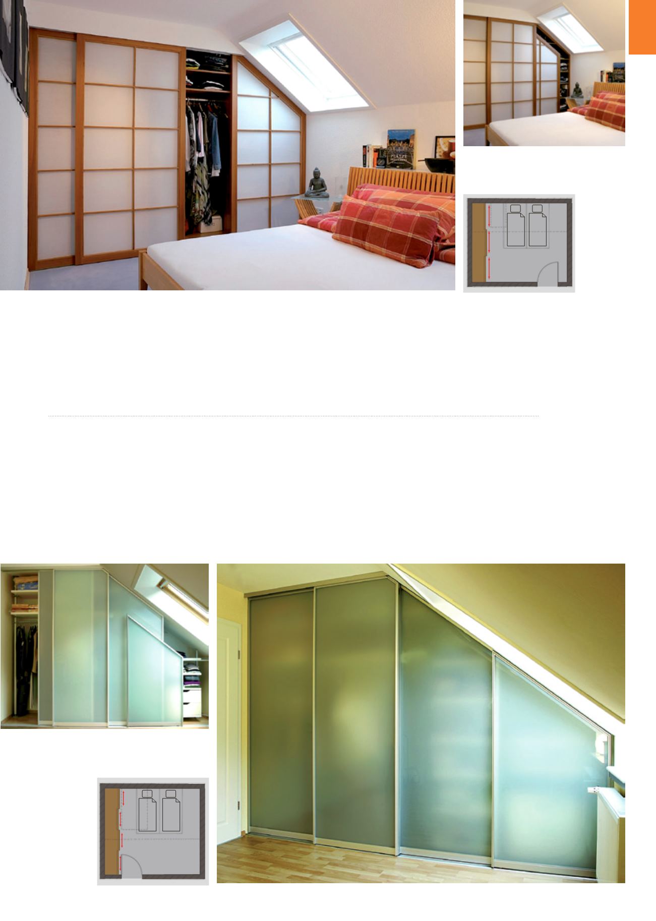 Hier sehen Sie zwei Dachschrägenlösungen für Ein-